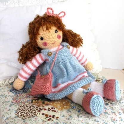 Amy Jane is a sweet doll with a happy smile and would make the perfect dolly companion for little girls. Her dress, shoes and bag can be removed. She is easy to make on two 3.25mm needles.