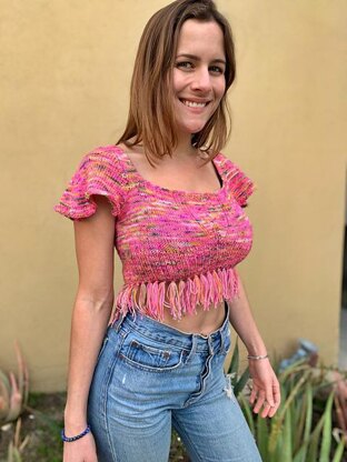 This bottom up design features i-cord detailing, ribbing texture and a fluttery, cap sleeve. The pattern is written to be customizable---lengthen the hem to make a top you can wear to the office, or rock it as a bralette to throw over your favorite swimsuit!