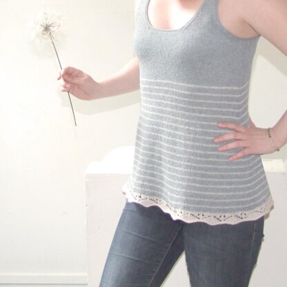 The top is worked bottom-up, seamlessly, and in the round until the underarm, when the front and back are divided and worked separately. For a neat and professional finish, an applied i-cord is worked on the lace edge, while the neckline and armholes are finished with a special firm bind off.