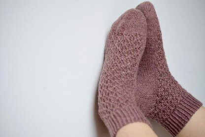 The Anaell socks are knitted from the cuff down to the toe. They begin with the stretchy and not-so-common Picot Cast-On for a neat edge. The cuff is worked in 1x1 Twisted rib stitch for elasticity. The leg uses an easy-to-memorise and engaging lace pattern. The heel flap is worked in Stocking stitch to keep it thin enough for warmer weather. After decreasing to create the gusset, work the foot, then finish the socks with the no-graft Short, Medium or Long Round Toe. Enjoy!