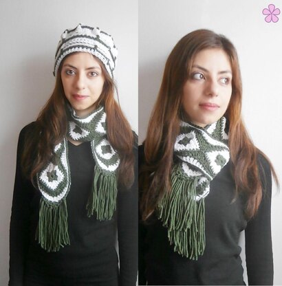Crochet scarf with fringes made of granny squares pattern // ANASTASIA scarf Crochet Pattern.