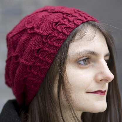 Let a bit of oriental spirit slip into your wardrobe! Anaya is a cute beret with elements taken from Arabic architecture, topped off with a huge tassel. All cables can easily be made without a cable needle.