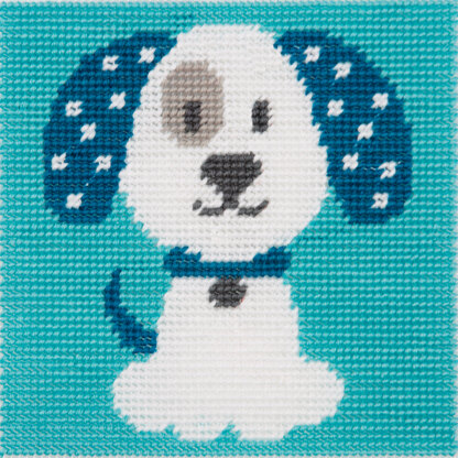 Puppy Love big hole kit featuring a cute dog is the ideal way to introduce your child to tapestry embroidery.