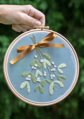 Here's a novel alternative to the kissing mistletoe bouquet! Beautiful mistletoe design embroidered on transparent fabric.
