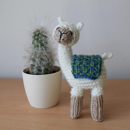 Andy is a cute little llama, with a cosy saddle blanket. Andy combines garter and stockinette stitch, and the blanket incorporates a slip stitch colour pattern. Designed by Amanda Berry @fluffandfuzz, this llama is knitted in acrylic DK yarns on single pointed needles (not in the round). For confident beginners and above, other techniques used include casting on and off, knits, purls, increases and decreases, and seaming to finish. Andy is 14cm tall.