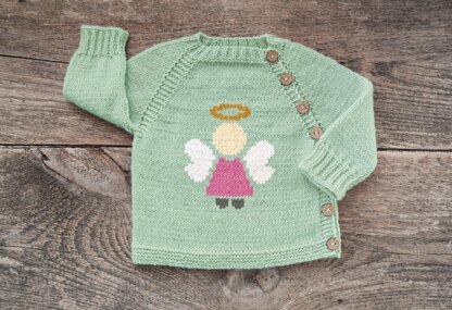 Designed for newborns to 4 years, this cardigan is warm, soft, and suitable for any season. Want a playful touch? Add an embroidered angel using duplicate stitch — optional but adorable! A simple chart is included.