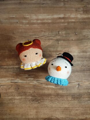 Create a soft and magical Christmas duo with this crochet pattern set. Amy the Angel & Sam the Snowman are two amigurumi-style ornaments designed to fit inside clear Christmas baubles.