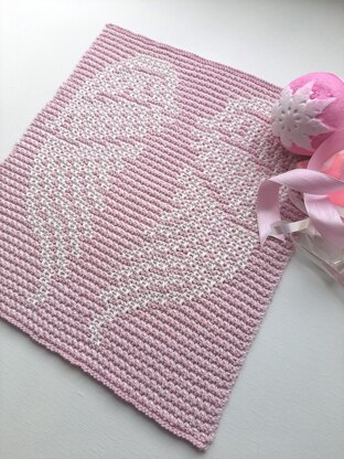 This washcloth is knitted in cotton 4ply. I used DMC Natural Just Cotton. If you are substituting a different yarn, you will need approx 140m in MC and 105m in CC of 4ply yarn.