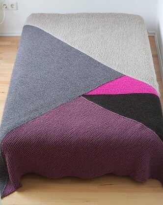 In soft and squishy, beautiful and simple garter stitch. Also modularly, so there is no sewing involved, but totally reversible (even the joining lines look good from both sides) and with a geometrically intriguing design: Each triangle is knit in a different direction, but each one features a right angle (hence the name). With fairly big needles in a luxurious aran-weight yarn mine was done in about three weeks. However, the pattern works with any yarn from your stash (gauge is not important) and can be made in any size: You could make a tiny baby blanket or a lap blanket for those cozy winter evenings on the sofa using aran or worsted weight leftovers you have in your stash (you will find detailed information on how to adjust the size and yarn amounts in the instructions).