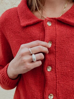A garment inspired by the allure of classic films and swinging movie stars. A cardigan with a perfect fit to be enjoyed for years. The body features a contiguous sleeve designed for a perfect fit at the shoulder, a double knit polo neckband and button band, and gusset details at the sleeve. The cardigan is worked top-down.