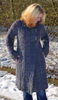 Anna is a long sleeved collared cardigan/coat, it was named after Anna Karenina, the heroine of the book of the same name, designed to be warm and snuggly perfect for a cold winterIt is made using block motifs, square and triangle. It has a loose fit and is written in 2 sizes.