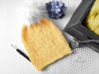 This pattern is written in English, American terminology with STEP-BY-STEP INSTRUCTIONS and LARGE & DETAILED PHOTOS for each step for making this charming hat for anyone. SIZES: •KIDS 4-10 years Circumference -adjustable Finished height 21cm / 8 ¼ inches •TEENS&ADULTS Circumference -adjustable Finished height 25cm / 10 inches SKILL LEVEL: INTERMEDIATE Basic skills of crocheting are needed MATERIALS: •For KIDS size use any FINE/SPORT, BABY yarn (thickness 2) •For TEENS & ADULT size use any LIGHT/DK yarn (thickness 3) •Hook – size 3.5 mm ( F ) for KIDS size - size 5 mm ( H ) for TEENS & ADULTS size •Sewing needle, scissors