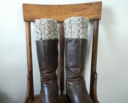 This eyelet mock cable ribbed boot cuff works up quickly and requires no cable needle! The Annie boot cuff fills the gap at the top of your boot and helps keep you warm and toasty while looking great at the same time. Knit in a bulky weight yarn this fall accessory makes for the perfect last minute gift or instant gratification project.