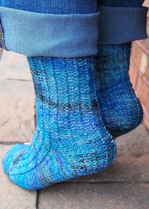 These socks feature a simple slipped-stitch pattern that runs down the heel flap. These are excellent road trip knitting, because there is really only one row to pay attention to. I think they are particularly nice in a variegated yarn, without the pattern getting lost.