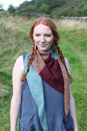 Anthriscus is a 'V' shaped shawl knit from tip to tip, starting at one end and increasing to the centre, working contrast central section with short rows then working decreases in the third colour to the opposite tip. When worn wrapped around, the first and third colours overlap and the third colour is not visible. This means you can play with fun colour contrasts and include a colour that you like, but don't want to wear close to your face.
