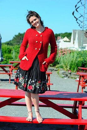 Anthurium is crocheted from the bottom up in one piece to the armholes. It begins with the ribbing worked side to side, then the texture pattern is worked along the side edge of the ribbing and continues to the underarms. The sleeves are worked in a similar manner then the body and sleeves are joined into a yoke and continue to the neck, decreasing along raglan lines. The hood is worked, the sleeves are seamed then a double-breasted button band is worked around the front edge.