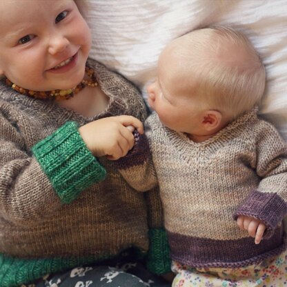 Anticipation, a simple, versatile v-neck pullover with two options: rolled or ribbed hems. It is knit entirely in the round from the top down. The sleeves and v-neck are picked up and knit in the round as well.