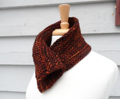 This is the antidote - bulky yarn, garter stitch, a few short rows, a button, and a couple of hours gets you this fun little scarf/cowl. Find that pretty single skein of bulky hand-dye and that awesome button you picked up at the last festival and whip this up in no time!