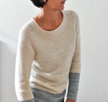 Antler is a cosy every day sweater. Easy to wear with a feminine neckline and nice garter stitch details. Play with colorblocking!