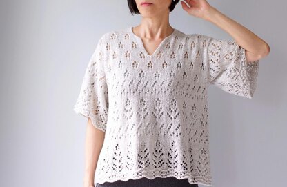 With eyelet lace reminiscent of a meadow of blooming wildflowers, Antonella is a beautiful piece for the warm weather. The drop-shoulder top, with its flattering split v-neck and slightly flared silhouette, promises both comfort and style. Antonella is knitted seamlessly from the top down, allowing you to try it on and check as you go to ensure you're on the right track. The upper back is worked first, with short-rows to shape the shoulders. Each upper front is then picked up from the back, shaped and joined to form the split v-neck. The front and back are joined at the underarms to work in the round. Sleeves are picked up from the armholes and knitted in the round.