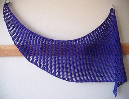 It is a top-down, asymmetrical triangle shawl. The design consists of a 4-stitch pattern and increases on both edges. You can make it bigger by working more repeats. Any yarn and colour will be great for it. Gauge is not important.