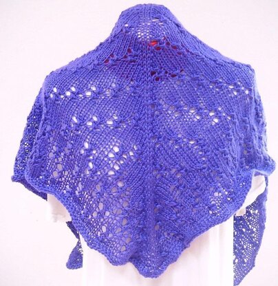 It is a top-down, symmetrical triangle shawl; increases on both sides and in the middle. The pattern consists of yo and s1k2togpsso. Any yarn and colour will be great for it. Gauge is not important.