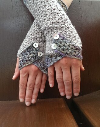 Aotearoa mitts feature a stitch and colours that remind me of fluffy cumulus clouds. They are constructed in an unusual way, with a decorative flap that shapes the upper part of the hand and defines the thumb hole when folded over. Light, elegant, and adorned with pretty buttons, these mitts or fingerless gloves will complement your evening wardrobe on one of those cool spring or autumn evenings and keep your wrists and forearms warm.