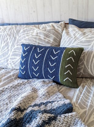 This throw pillow is crocheted in a simple herringbone half double crochet stitch pattern. The arrow embroidery is added after crocheting is complete—it makes this asymmetrical pillow design intricate and unique! This pillow pattern was designed to fit a 12" × 20" pillow form; the back of this pillow is crocheted in two pieces which creates a little opening so you can remove the pillow form if needed. Alternatively, this pattern also has instructions for a single piece backing, if you would prefer to use stuffing.
