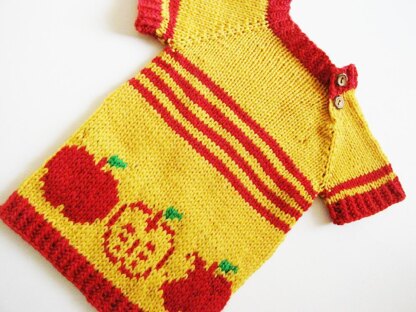 Top-down dress/tunic, striped, seamless and featuring vintagenettles lovely colorworked apples - what could possibly go wrong?