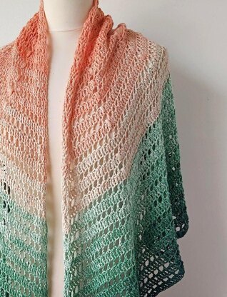 Pattern is for a Semi-circle Crochet Shawl. It perfectly drapes around your neck and shoulders and is an easy relaxing pattern using basic stitches. The half circle shape of this crochet shawl is very versatile, and the open lace stitches makes the design light and easy to wear. Crocheted from the top down with an easy to remember increase sequence. Handy printable stitch count chart included to keep you on track.