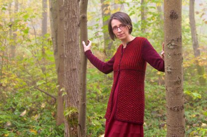 As comfortable with a glass of wine on the patio as on a tryst in the forest, this aristocratic sweater may be essential for your armoire. Two different & simple slip stitch patterns and two strong coloured yarns give it a timeless beauty. And you can decide which length to knit, too. The short version is smart and dressy, while the long version is elegant and sophisticated.