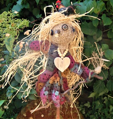 A fun and easy to crochet scarecrow made with jute/hemp, raffia and a gradient yarn. Only sc, hdc and dc stitches are used.