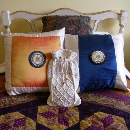 This Hot Water Bottle Cover was inspired by the traditional fisherman knits of the Aran Isles. The diamond pattern is reminiscent of the fisherman nets and the picot stitching around the top edge is like the waves so familiar to men of the sea.