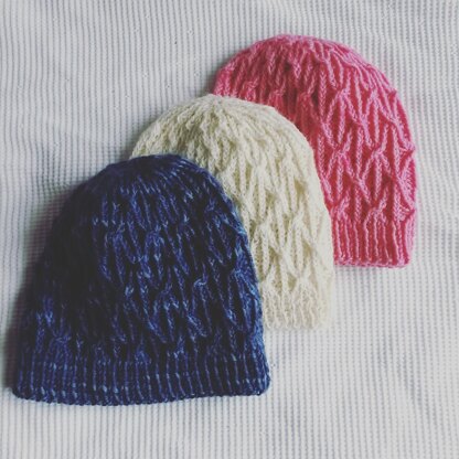 The hat is sized for an adult, but instructions are given on adjusting the stitch count to create a smaller or larger hat. Gauge is not hugely important for this beanie; the fabric has some stretch and is a forgiving fit. The hat is seamless, as it is knit in the round, and is super soft and comfortable to wear! Any Aran yarn should be suitable for this pattern. One 100g skein should be just enough for one hat, I would suggest a requirement of 100 metres/110 yards of yarn.