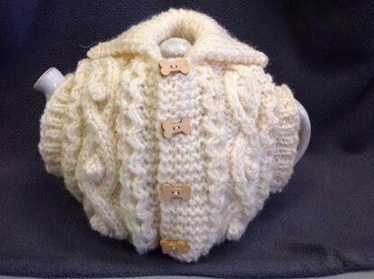 Using a different cable design to the other Aran Tea Cosy that we have created, and this one does not have the pockets in them.