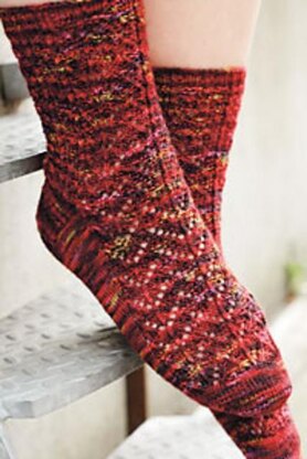 This colorway gave me fits trying to find a stitch pattern that would work with it and not against it. After much thought, I decided to try something with simple, linear lace elements. Success!
