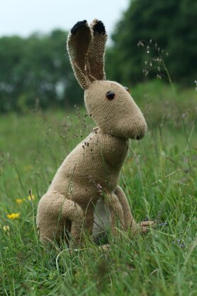 This is a knitting pattern to make a lifelike hare with the gangly hind legs that produce the life-saving speed they possess. Knitted on straight needles, the seams help to give your hare structure. Using fine needles gives a dense fabric and delicate look to your hare.