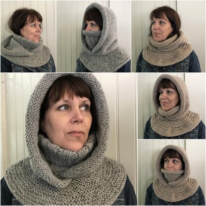 The Arctic Chill Hat and double cowl will keep you snuggly warm when the cold wind blows. It is a versatile and unique winter accessory for cold temperatures. The garment incorporates a generous hood and two cowls, all knitted together. Combining all three together is very easy.