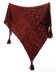 The shawl is worked on the bias with increases always placed along the same edge. The other two edges remain straight throughout the entire shawl. The shawl is framed with an i-cord edging that gives it a finished look. Tassels attached to each of the three corners add to the rustic charm.
