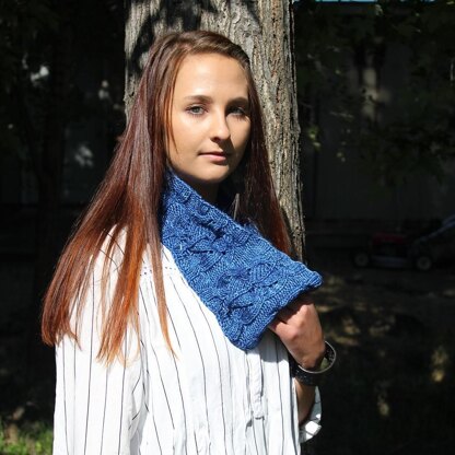 Aress Cowl has a lovely lace and cable pattern. This is knit in the round, and knits up super-fast. The pattern is written out and charted.