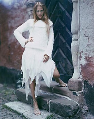 This pretty pullover is shaped at the waist and has slightly bell-shaped sleeves. It is simple yet feminine and can be worked in a heavier mohair or even a brushed alpaca! One of my favorites...