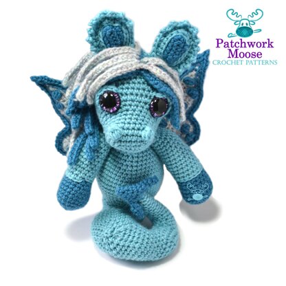 Ariadne is a good cuddle size, she measures approximately 9 inches to the tips of her ears in a DK weight yarn. However, she can be made from any weight yarn and appropriate hook for different sizes. This is not a pattern for beginners, but it is an easy pattern to follow with plenty of photos, and if you run in to any problems you will always be welcome to contact me for any extra help.