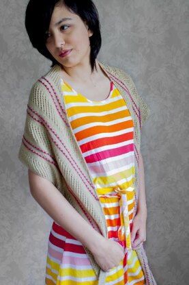 The Arius Shawl is the sister pattern to the Caprius Shawl. This shawl is knit bottom-up, using double decreases and single increases to shape the shawl into its asymmetrical shape, that slants to the left. While the cast-on and first couple of sections require a large amount of stitches, the knitting goes faster and faster the more you knit. The shawl features an eyelet section paired up with a pop of color in the form of miniature bobbles on a stockinette background. Use a neutral color for the background and a bright, bubbly, vivid, fun color for the bobble strands! Get creative!