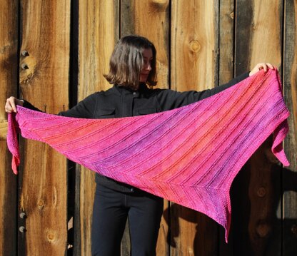 Arizona Sunset is a great starter project for a beginner, but interesting enough for someone more advanced. This is knit sideways and worked with the yarn held double thru out.