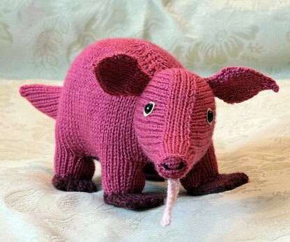 An easy toy pattern for an anteater. Can be knitted using any double-knit wool. Additional materials: Polyester filling or similar, toy safety eyes (optional - you can embroider them if you prefer), a small amount of stiff card for the feet.