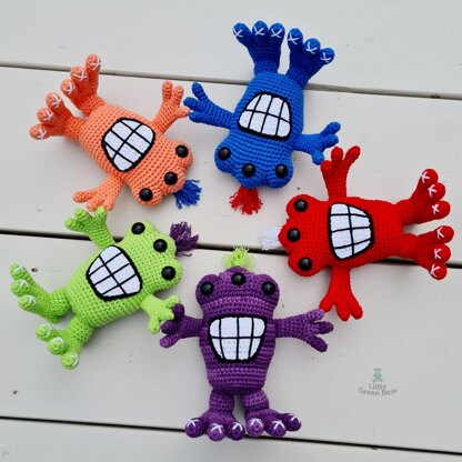 Arnie, the happy little alien, is having some spaceship problems at the moment and has decided to have a look around Earth until his intergalactic tow truck turns up. Him and his buddies love it here and plan to come back every year for their holidays! He is 6.5 inches tall (when made with recommended materials).