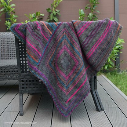 ~ Scheepjes Wanderlust (50% acrylic, 100g/232m) x4 balls of Las Vegas (458) ~ Scheepjes Colour Crafter (100% acrylic, 100g/300m) x3 balls of Pollare (2018) ~ 4mm (US G/6) crochet hook ~ Scissors, tapestry needle to weave in ends.