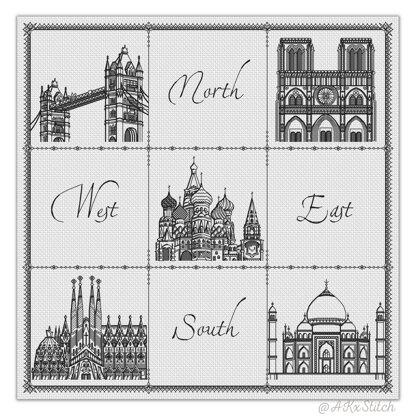 Around the World Full Set Counted Cross Stitch Pattern and PDF Digital Download. Easy to Follow Embroidery Chart featuring a set of beautiful sketches of famous landmarks: London, Paris, Barcelona, Taj Mahal, St. Petersburg. Patterns can be swapped around or used individually.Stitched on Aida 14ct: 31 x 31 cm (12 x 12 in)DMC Threads: 1 solid colours (0 blends)Used stitches: backstitch/blackwork, French knotsSkill level: Intermediate / AdvancedStitch time: 200-280hCross stitch pattern in PDF, Instant Digital Download includes: 1) cover page with preview; 2) instructions, symbols key and shopping list (DMC thread colour numbers and estimates, as well as fabric options); 3) two black and white charts, with and without backstitch; 4) two colour charts, with and without backstitch; 5) single-page file for Pattern Keeper (available on request).Please note: This pattern is for personal use only - not for commercial use. You can't make copies of our charts to distribute (either as PDF or printed versions) but you can definitely sell your finished cross stitch work.