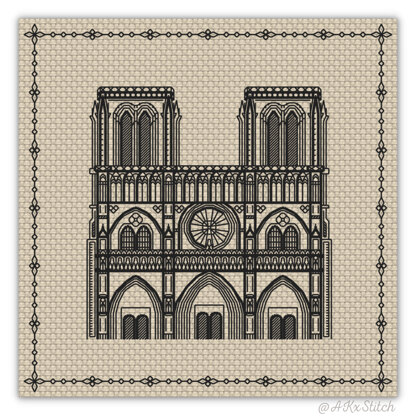 Around the World "Paris" Counted Cross Stitch Pattern and PDF Digital Download. Easy to Follow Embroidery Chart featuring a beautiful sketch of Notre-Dame de Paris, France. Also available are other patterns from the same series.Stitched on Aida 14ct: 13 x 13 cm (5 x 5 in)DMC Threads: 1 solid colours (0 blends)Used stitches: backstitch/blackworkSkill level: Intermediate / AdvancedStitch time: 10-15hCross stitch pattern in PDF, Instant Digital Download includes: 1) cover page with preview; 2) instructions, symbols key and shopping list (DMC thread colour numbers and estimates, as well as fabric options); 3) two black and white charts, with and without backstitch; 4) two colour charts, with and without backstitch; 5) single-page file for Pattern Keeper (available on request).Please note: This pattern is for personal use only - not for commercial use. You can't make copies of our charts to distribute (either as PDF or printed versions) but you can definitely sell your finished cross stitch work.