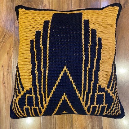 YOU WILL NEED 3.25mm (US D3) crochet hook Lionbrand 24/7 cotton (3.5oz/100g, 186 yd/170m per ball) Yarn A: 3 x 100g balls in Black (153) Yarn B: 3 x 100g balls in Goldenrod (158), Cushion inner: 50cm (20in) square for a very plumped look or 45cm (18in) square for standard, Tapestry needle, Pins for joining ,Optional: buttons for closure (however many you prefer)